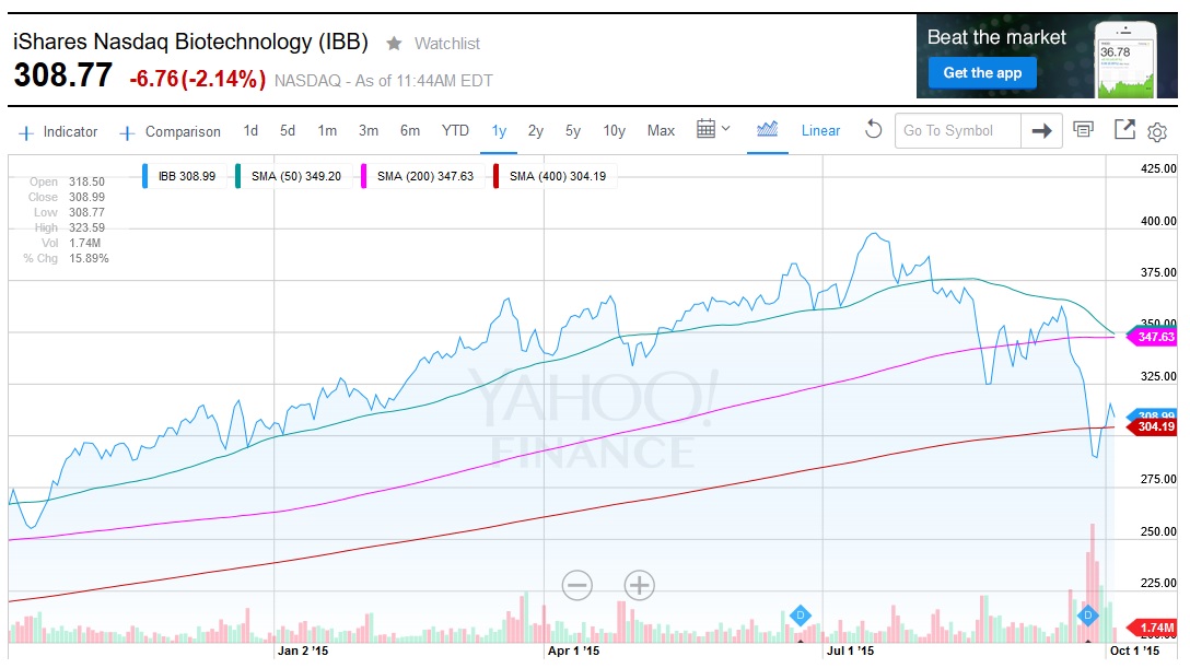 As far as large (IBB) and small (XBI) biotech ETFs, they are down late Monday morning after popping at the open but this didn't surprise me as I expected both these indexes might retest their 400-day moving average before moving back up (click on image):
